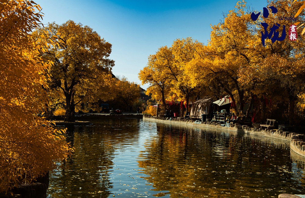 这里植被繁多,地貌各异,既展现出“大漠孤烟”的雄浑与苍茫,又保留着“长河落日”的静谧与柔美。登高望远,悠长的峡谷蜿蜒曲折、千年胡杨金黄灿烂,耀眼斑斓,宛如一片绚烂的火焰在峡谷中燃烧。