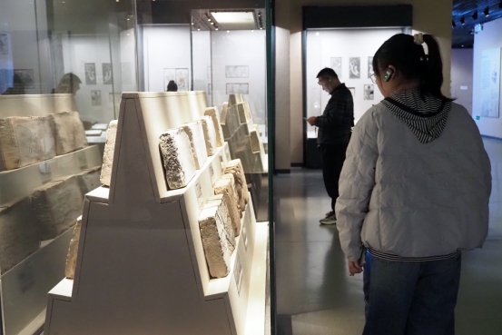 观众正在观赏陈列于展柜中的古代画像砖文物 中国网记者 曹川川/摄
