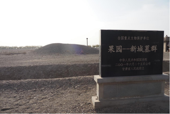 1972年初,有个养羊的老爷爷在这片戈壁牧羊的时候,坐在一个小沙丘上休息,闲来无事,拿着牧羊的棍子戳着地上的沙土,无意间发现了一处隐秘墓葬,果园-—新城墓群的神秘面纱就此被揭开。后经考古人员多次发掘,多幅保存完好、色泽如新的墓砖壁画相继出土。