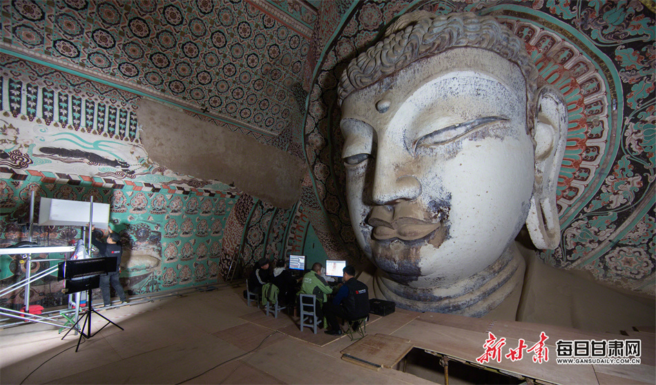 莫高窟第130窟-壁画数字化采集工作照(敦煌研究院供图)