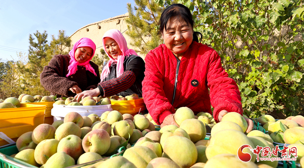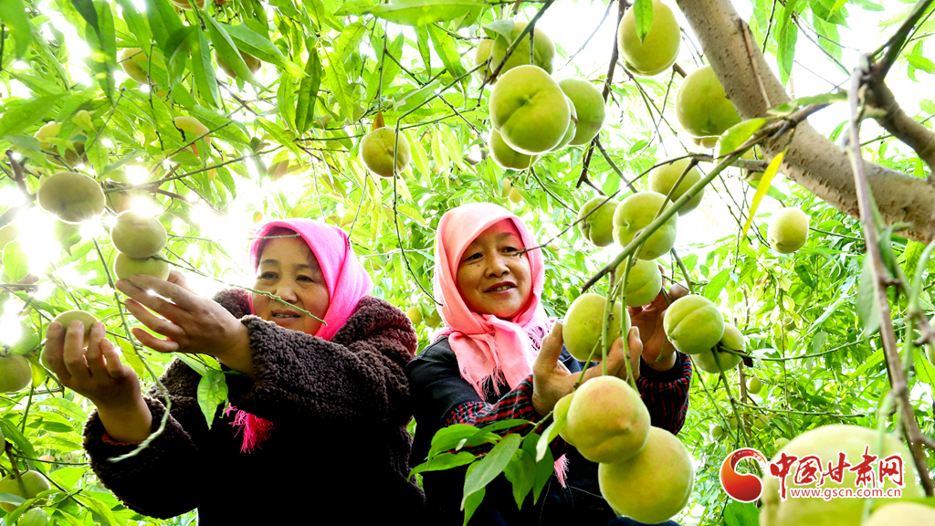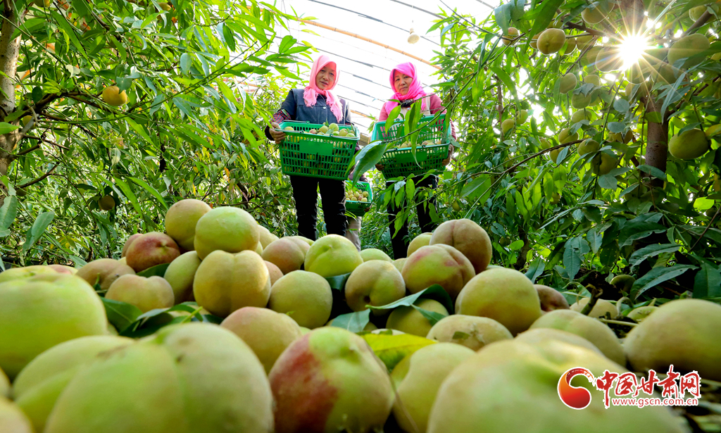 连日来,甘州区长安镇的错季鲜桃种植基地迎来丰收。5万多棵“甘泉雪桃”树上,绿中透红的果实挂满枝头,果香四溢,展现出成熟的饱满色泽。农户们正忙着采摘3万余斤成熟鲜桃,以满足消费者与客商的订单需求。