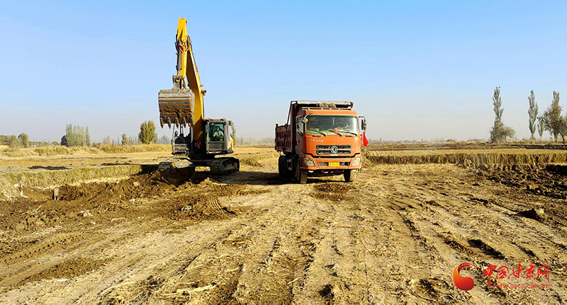 近日,在金塔县古城乡古城村的高标准农田建设现场,大型推土机、平地机往来穿梭,轰鸣声此起彼伏,工人们正忙着平整土地、修筑田埂,一幅“沃野织锦绣,田畴焕新颜”的生动图景徐徐展开。