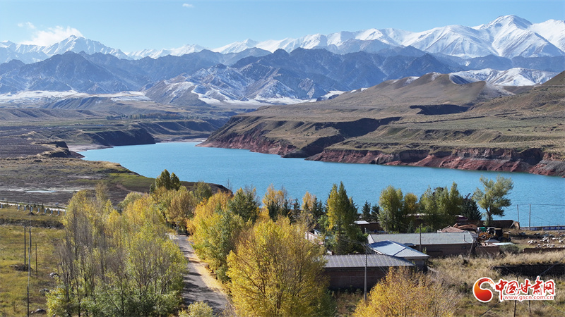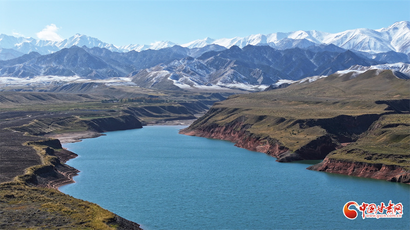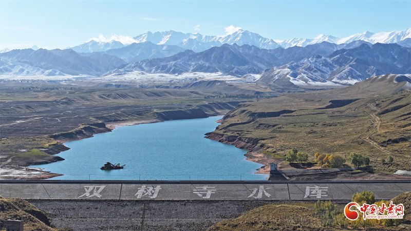 眼下,秋日的民乐县双树寺水库一派迷人景象,碧波衬托着蓝天,宛若明镜的水面横卧在山川之间,周围层林尽染,构成了一幅绝妙的秋日山水画卷。
