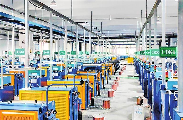 白银有色长通公司超微细电磁线生产现场。