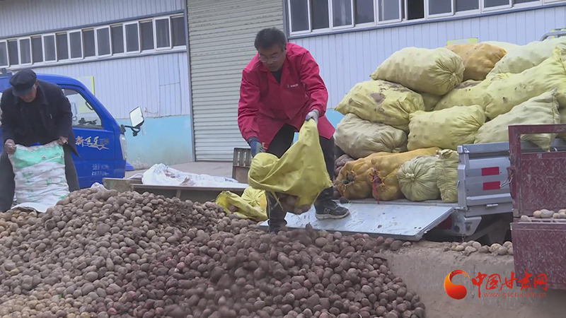 在庄浪县宏达淀粉公司马铃薯收购点,工作人员各司其职,磅秤前每车马铃薯的重量被仔细核对、高声报数,记账员随即落笔入册;分拣区内,铲车灵活作业,将马铃薯堆放得整整齐齐,现场一派繁忙有序的景象。