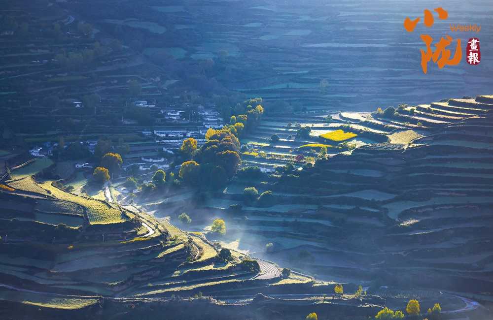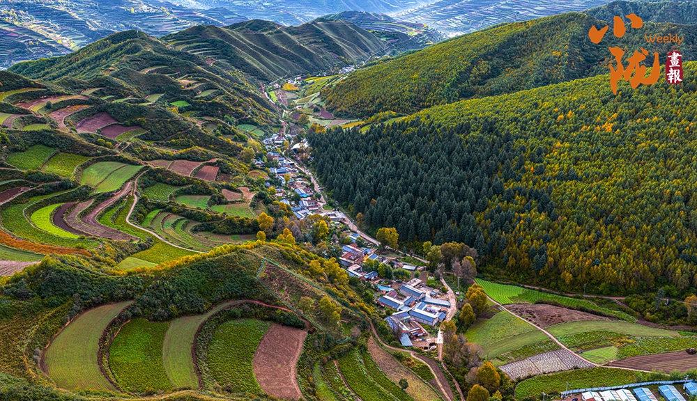 秋末初冬,多彩秋色映照着美丽的临潭。五彩斑斓的梯田纵横交错、顺山而变,宛如一条条彩带,在山间飞舞。村落点缀其间、古朴自然,田园生活诗意盎然。