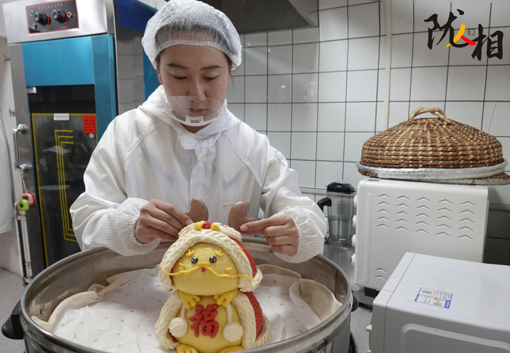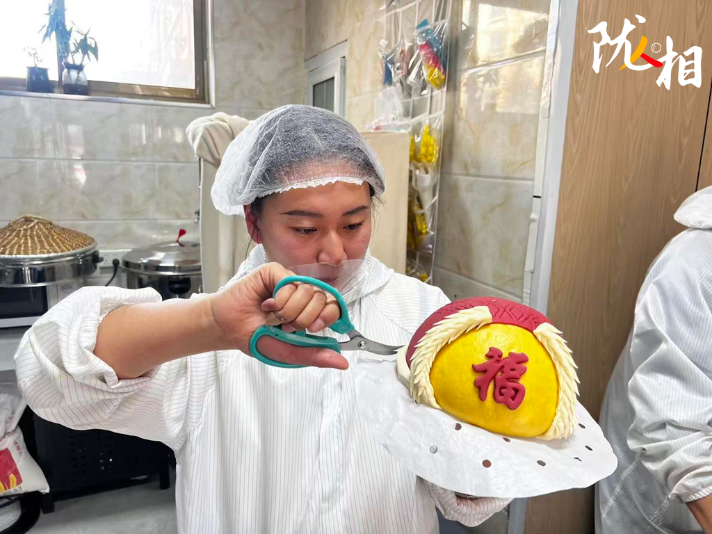 和面、上色、造型、醒发、蒸制……指尖翻飞间,一道道工序有条不紊,一只憨态可掬的生肖龙醒狮花馍便在苏娜手中悄然成型。