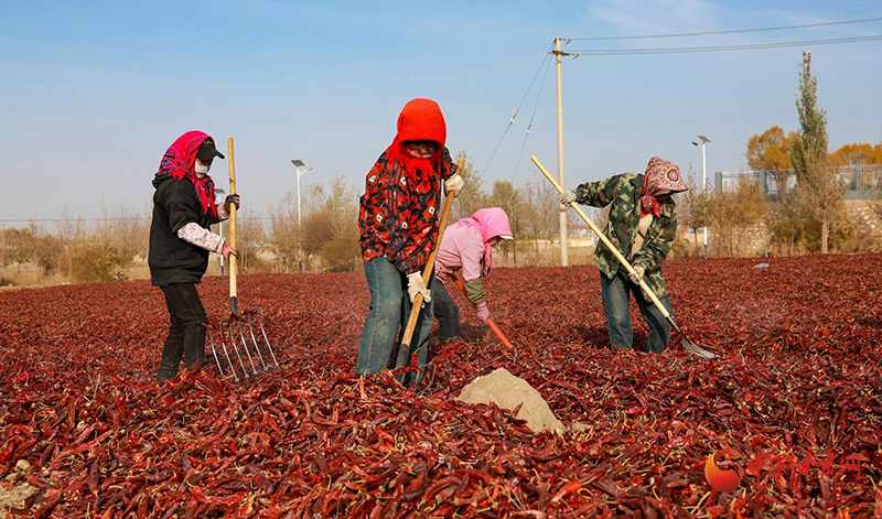金塔:辣椒晾晒忙丰收 奏响 “椒”香致富曲