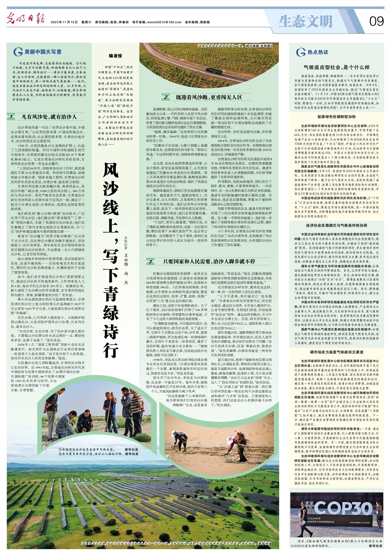 原标题:风沙线上,写下青绿诗行