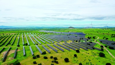 在内蒙古兴安盟,当地实施防沙治沙和风电光伏一体化工程,在林草固沙、改良土壤的同时开发风电光伏产业,增能增绿。新华社发