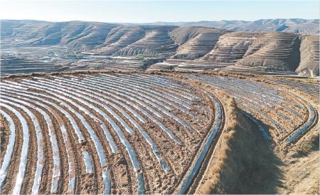 11月15日,安定区凤翔镇南廿铺村田间农机轰鸣。施肥机、旋耕机、覆膜机穿梭作业,黑色地膜如墨色冬衣般严实铺展,一块块裸露的土地陆续“穿”上紧致平整的“冬装”。