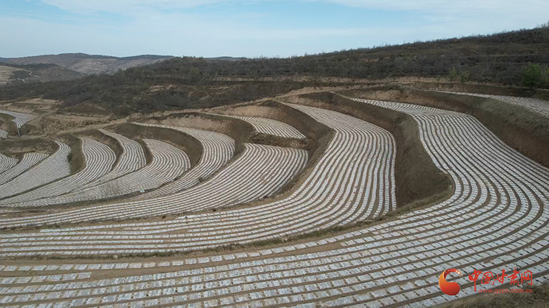 走进静宁县三合乡前咀村,覆膜机正在穿梭作业,层层梯田银装素裹,吕长文正在自家地里忙碌着。