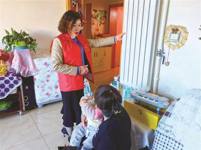 “孙姐,今天已经开始供暖了,我们刚才帮您把暖气片的冷气排空了,再过个一会就热起来了。这是一张‘访民问暖’连心卡,上面有5个电话,只要暖气不热,不管打哪个都好使,工作人员会第一时间上门为您解决问题。”该县审计局下沉干部包玉容在供暖第一天就来到南街社区西林楼三单元的孙姐家。