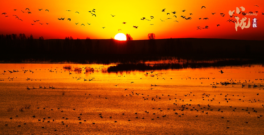 在寒潮来临之前,成群的候鸟如约而至,它们穿越重山、飞越万里,只为在这片湿地上安家落户。每年,这里都会聚集起100余种4万多只的水鸟,为这片自然之地增添了一抹绚烂的色彩。