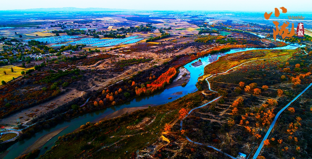 初冬,湿地公园水清河畅,岸绿景美。金色胡杨褪去青涩,五彩红柳缀满枝头,石羊河畔仍守着最后一抹绿意,呈现出一幅生态美景。