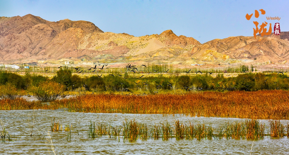 水草摇曳、波光粼粼、候鸟翻飞,湖泊与沙丘共存,蓝天与碧水相接,集大漠戈壁、芦苇、候鸟、湖泊于一体,构成了一道独特的自然景观。