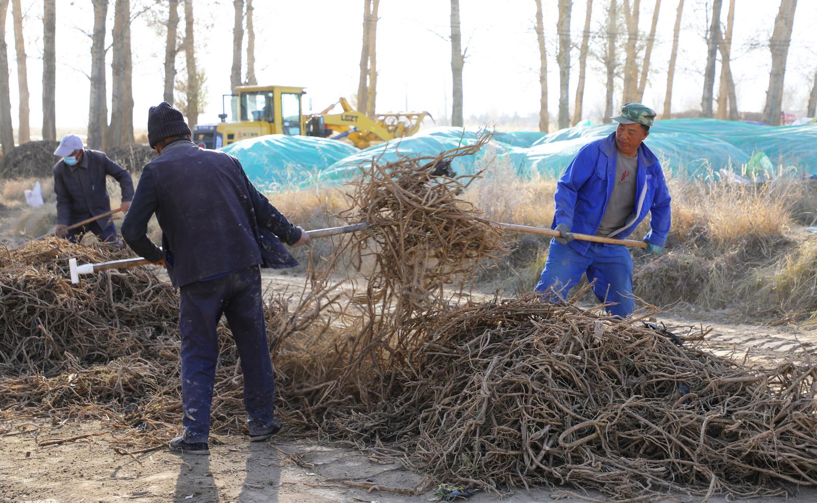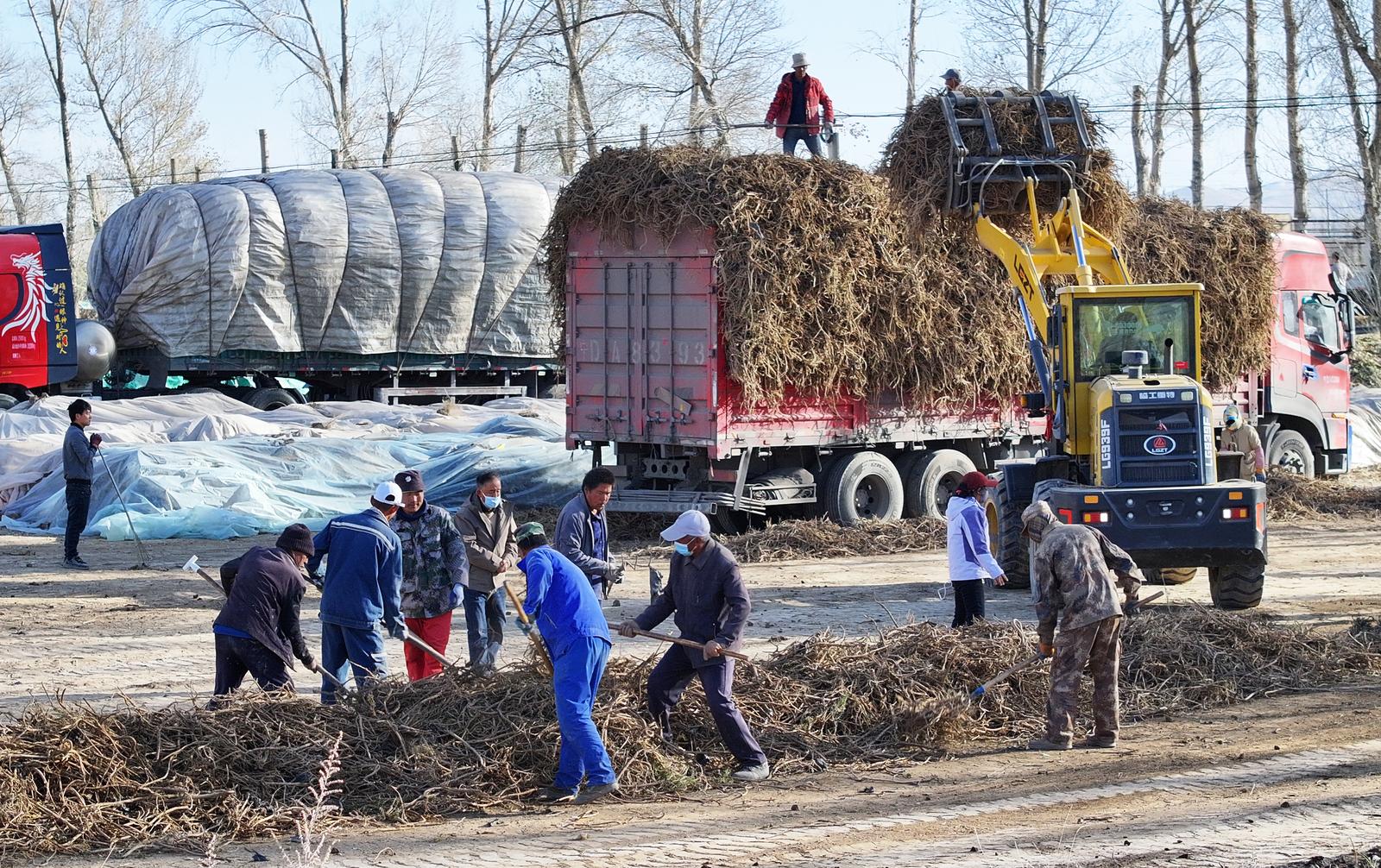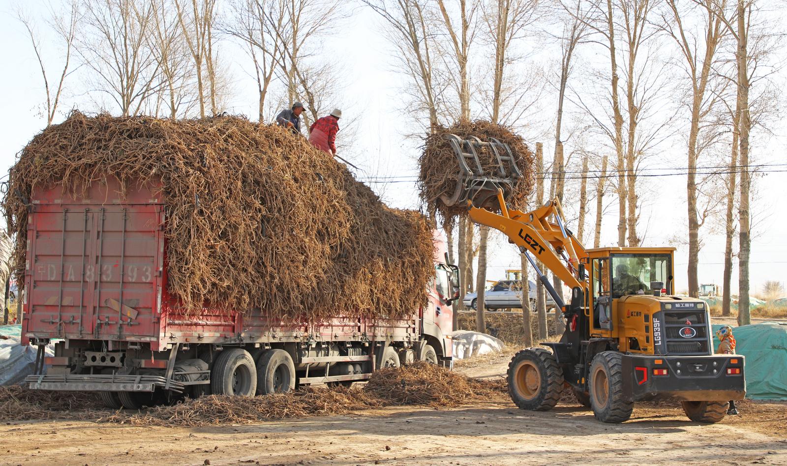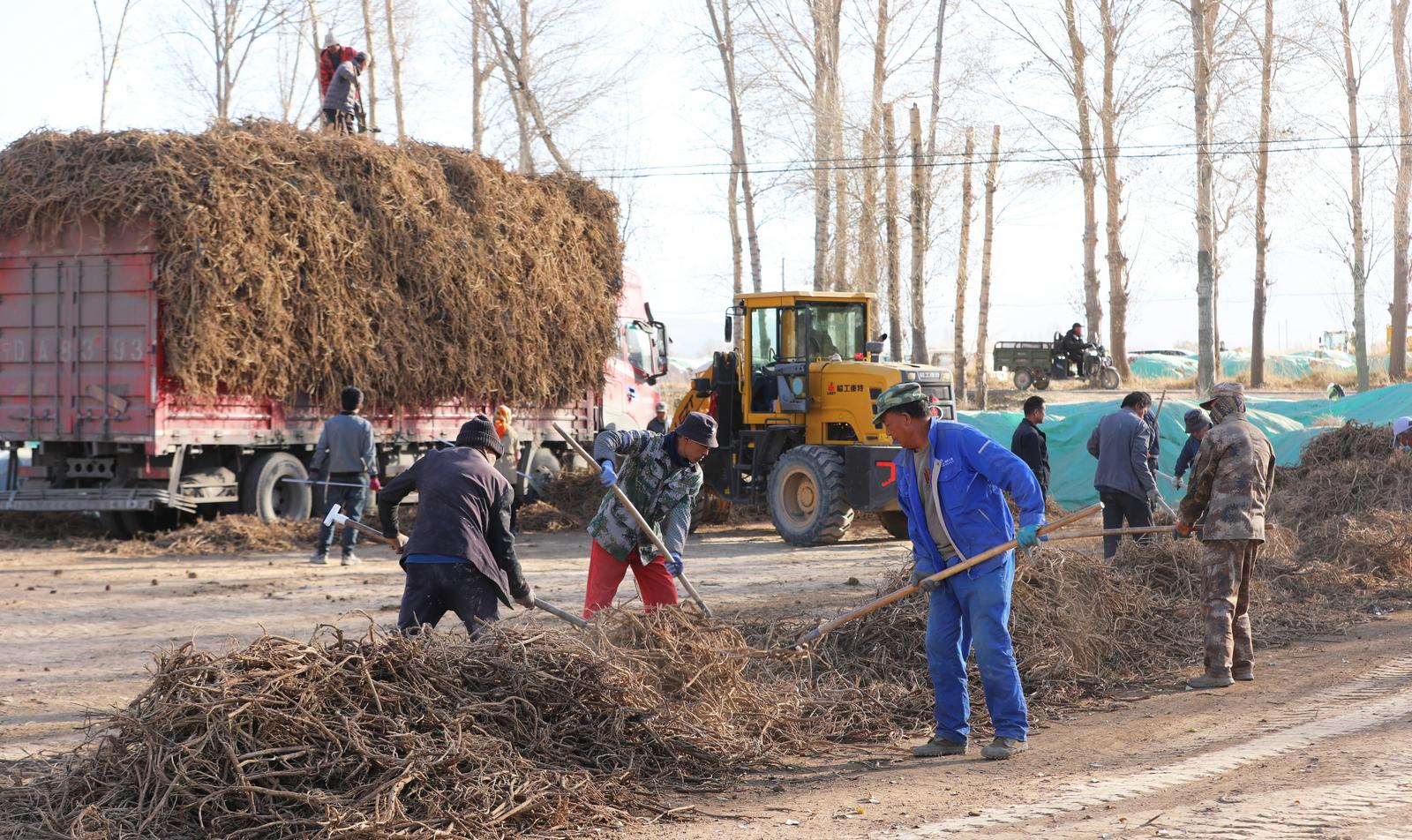 2025年11月12日,在甘肃省张掖市民乐县顺化镇旧堡村,药农们正忙着将采收的黄芪装车运往亳州、陇西等地销售。