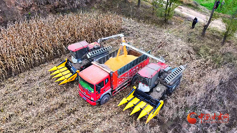 初冬时节,庄浪县盘安镇的1.4万亩玉米经自然风干后进入最佳收割期,多台联合收割机在田间轰鸣前行,金黄玉米粒如流金般涌入运输车,随即直达镇农特产品运营中心广场,实现田间到加工点的无缝衔接。