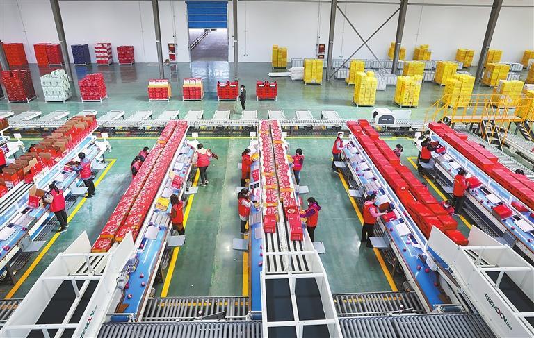 在静宁县德美地缘现代农业集团分选车间,自动化生产线高效运转。“按糖度、果径自动分级,‘德美果’成了国家级运动员特供果。”总经理田积林说。
