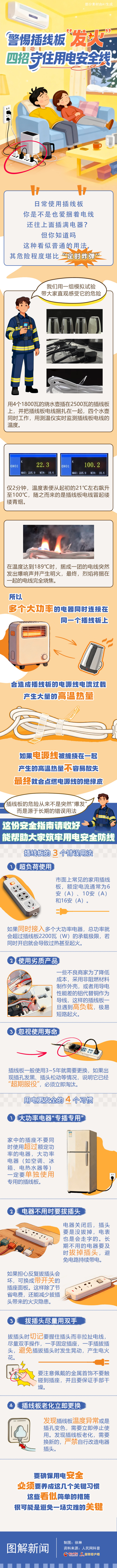 长图|警惕插线板“发火”!四招守住用电安全线