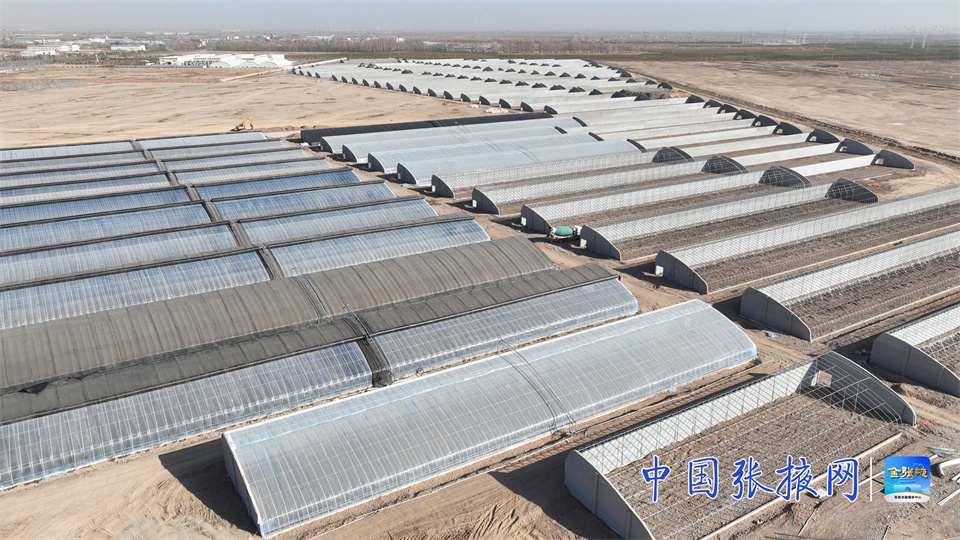 在甘州区巴吉滩万亩零碳戈壁农业园区(一期)建设现场,大批工人和机械正在紧张作业,一座座采用eps空腔保温模块搭建的日光温室已经拔地而起,勾勒出这片昔日荒漠上现代农业的崭新轮廓。