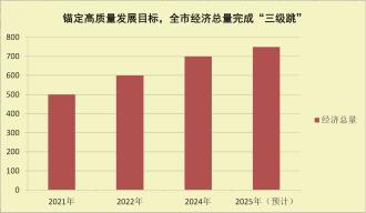 锚定高质量发展目标,全市经济总量完成“三级跳”:2021年突破500亿元,2022年迈过600亿元,2024年跻身700亿元行列,4年跨越3个“百亿台阶”,年均增长6.3%,预计今年将达750亿元以上。人均地区生产总值增量超1.4万元,让群众切实共享发展成果。