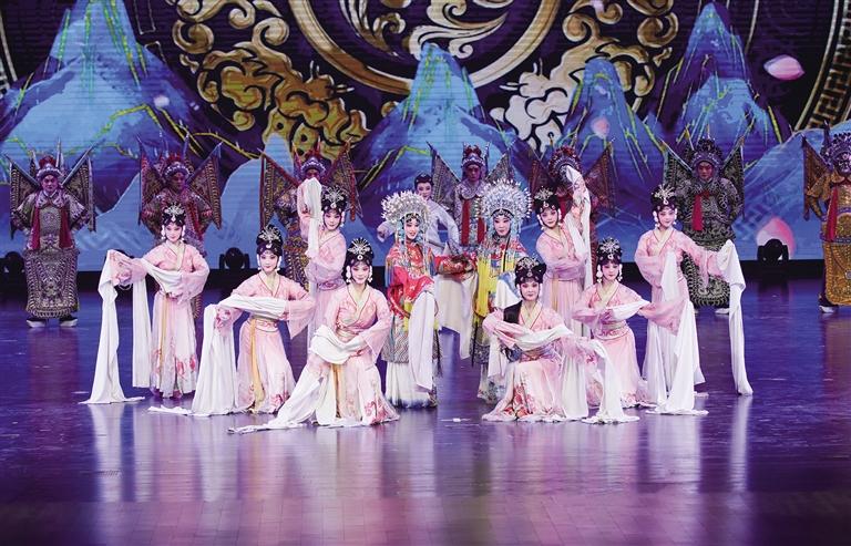 当省陇剧院的戏曲荟萃《薪火相传·梨园美》亮相,现场氛围被推向高潮。秦腔的高亢激昂与陇剧的宛转悠扬交织,演员们以精湛唱腔演绎古今故事,传递着“戏比天大”的梨园精神。观众李女士表示,“没想到非遗这么有魅力,尤其是学生们跳的敦煌舞,让我看到了传统文化的未来。”