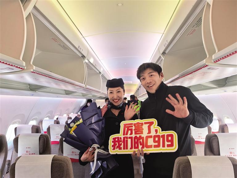 首航航班上,甘肃旅客王振威难掩激动:“本来买了昨天的返程票,看到C919首飞兰州的消息,立刻就改签了。在上海多次见过它,今天终于能体验国产大飞机,特别自豪。”像他这样专程“打卡”的旅客不在少数。东航飞行总队飞行九大队飞行检查主任张少波介绍,C919的先进增压系统和稳定性能有效应对高原特殊气象条件,此次航班机组也提前作足准备,确保了全程平稳顺畅。