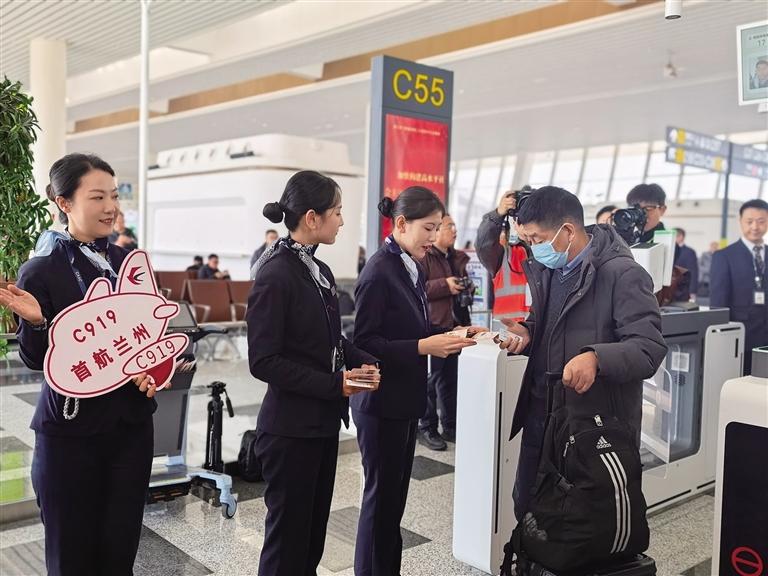 旅客前往乘坐由C919执飞的MU9180兰州至上海航班