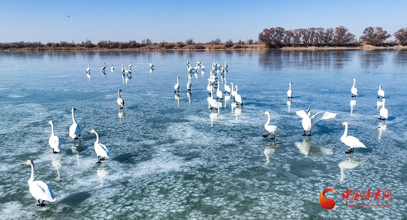 冬日的金塔,寒风虽至,但水库与湿地并未沉寂。在金塔县芨芨水库的湖面上,大天鹅舒展洁白羽翼,赤麻鸭踏着水波嬉戏,一群群候鸟如约而至,或俯身啄食水草,或翩跹掠过水面,用灵动身影划破冬日静谧,谱写出一曲生机盎然的乐章。
