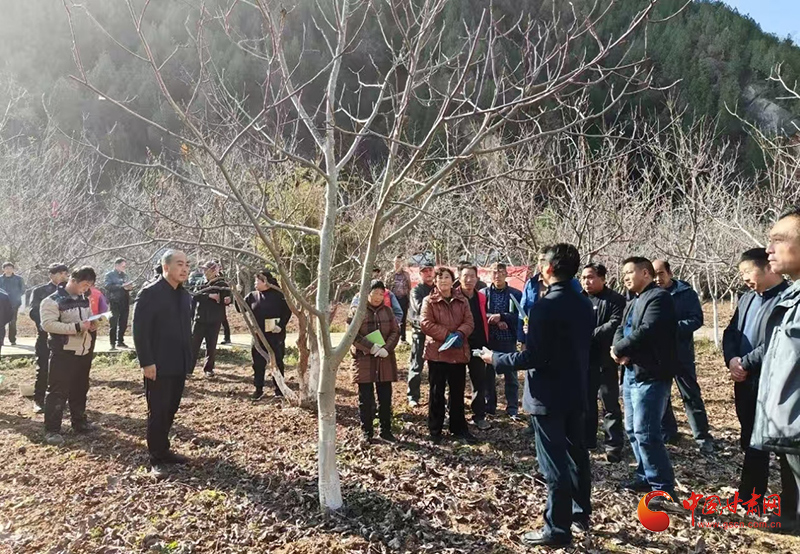 县林果中心技术人员在太石乡讲解冬季核桃树管护技术要领