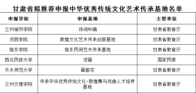 2.甘肃省拟推荐申报中华优秀传统文化艺术传承基地名单