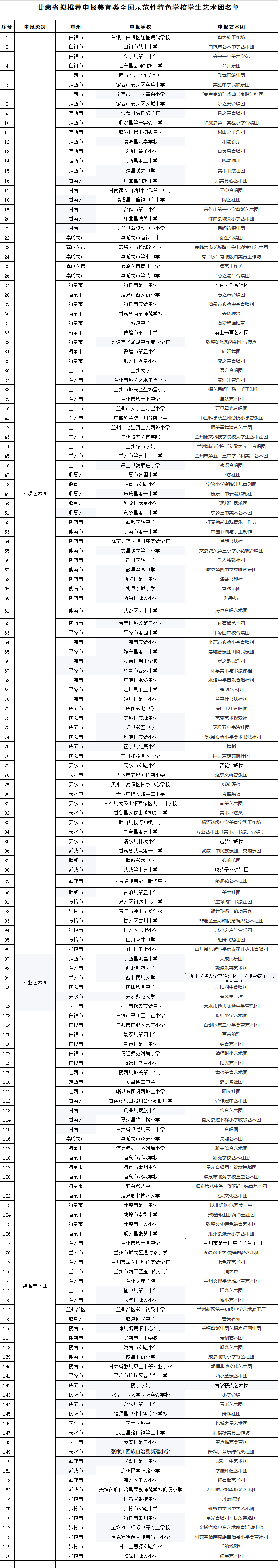1.甘肃省拟推荐申报美育类全国示范性特色学校学生艺术团名单