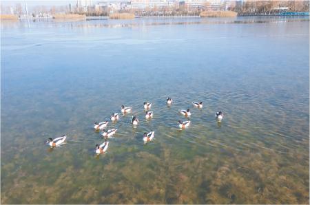 日前,一群翘鼻麻鸭飞临定西湖停歇休整。近年来,定西市深耕生态保护,环境持续向好,成为候鸟迁徙的温馨“驿站”。