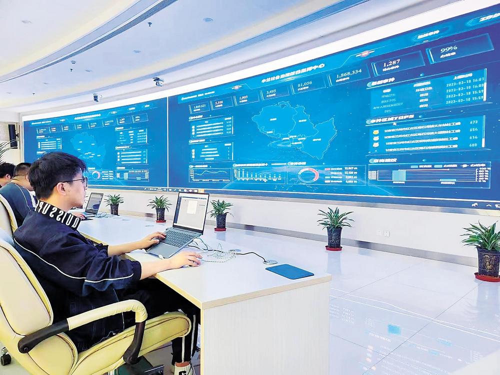 兰州市社会治安综合治理中心工作人员实时关注“民情地图·小兰善治”平台。