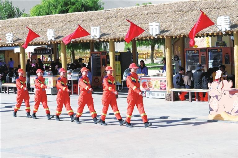敦煌市消防救援大队“九色鹿”女子服务队在景区开展消防安全动态巡查。