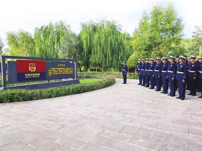 敦煌市消防救援大队举行重温国家综合性消防救援队伍誓词仪式。