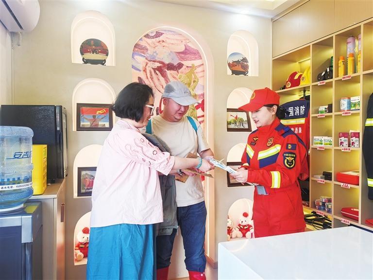敦煌市消防救援大队“九色鹿”女子服务队在鸣沙山月牙泉景区开展消防安全宣传活动。