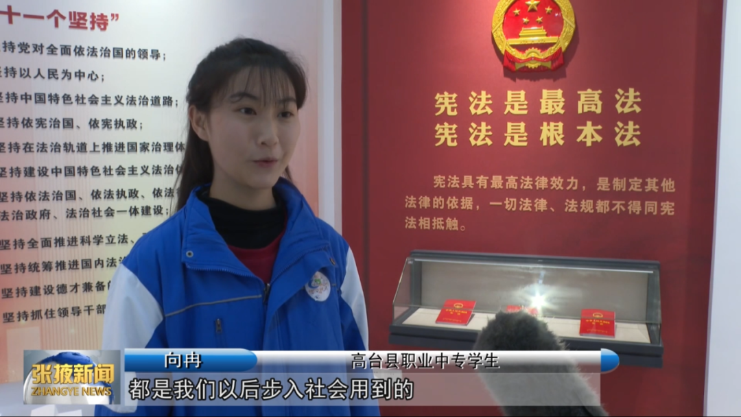 走进高台县职业中专青少年法治宣传教育实践中心,宪法科普活动正在有序开展。同学们化身讲解员,向大家讲解宪法中对青少年受教育权、人身权等合法权益的保障等内容。