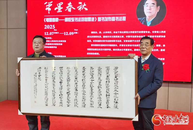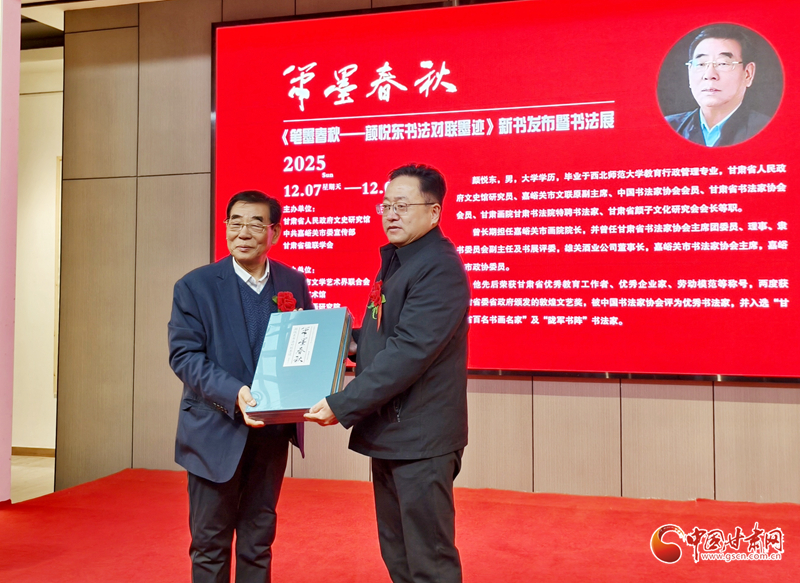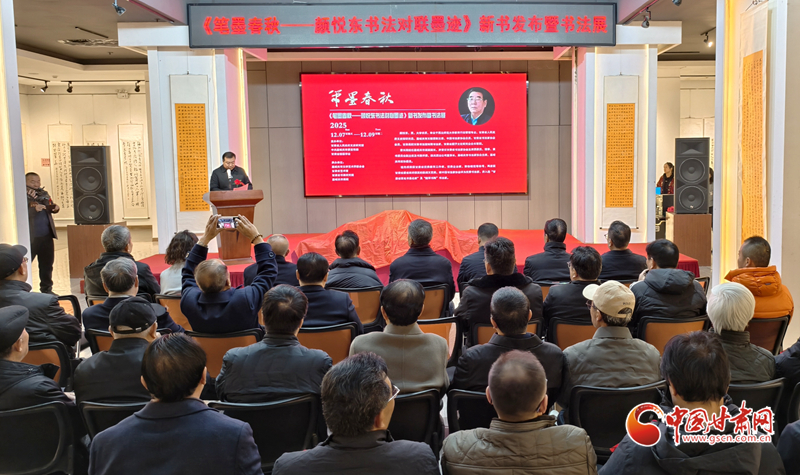 中国甘肃网12月7日讯(西北角·中国甘肃网记者 任磊)12月7日上午,《笔墨春秋—颜悦东书法对联墨迹》新书发布暨书法展在甘肃省艺术馆启幕。本次展览集中呈现颜悦东近年来创作的120幅书法作品,同期发布的新书收录楹联作品330副,系统呈现了作者在书法领域的艺术探索与创作成果。