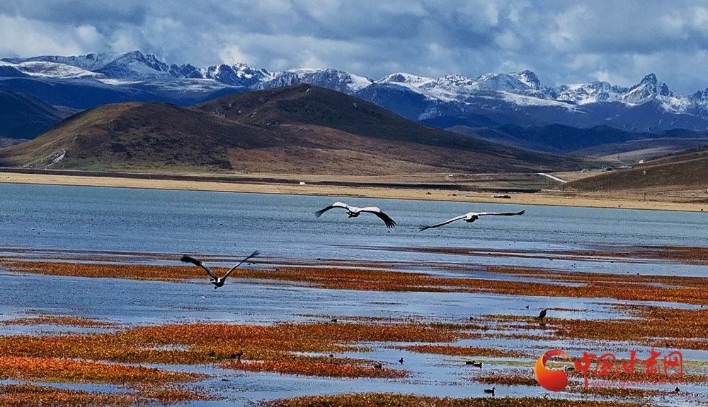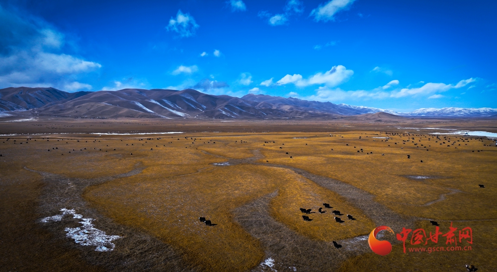 初冬时节,从空中俯瞰平均海拔3500多米的玛曲湿地,大大小小的湖泊如珍珠般洒落在草原上,上万只候鸟在这里安心度过繁殖季,准备飞往南方过冬。