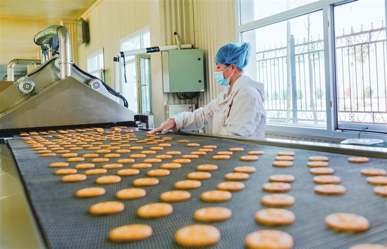 定西大力推进马铃薯产业延链补链。图为马铃薯饼干加工企业。