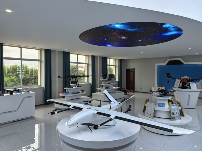庆阳宁县低空经济小镇一无人机生产企业的展示区。安志鹏摄