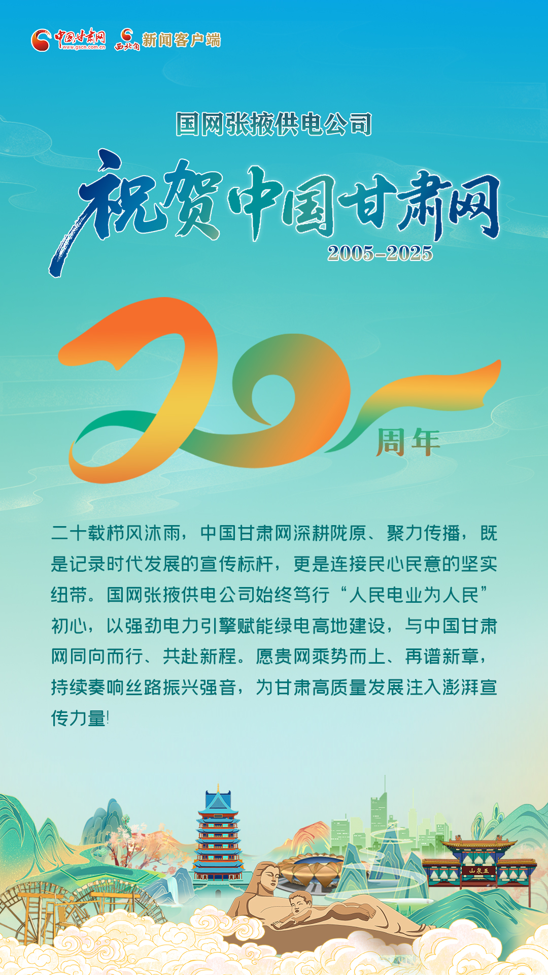 二十载·正青春丨国网张掖供电公司祝贺中国甘肃网成立20周年:廿载深耕宣传纽带,电力同行共赴新程