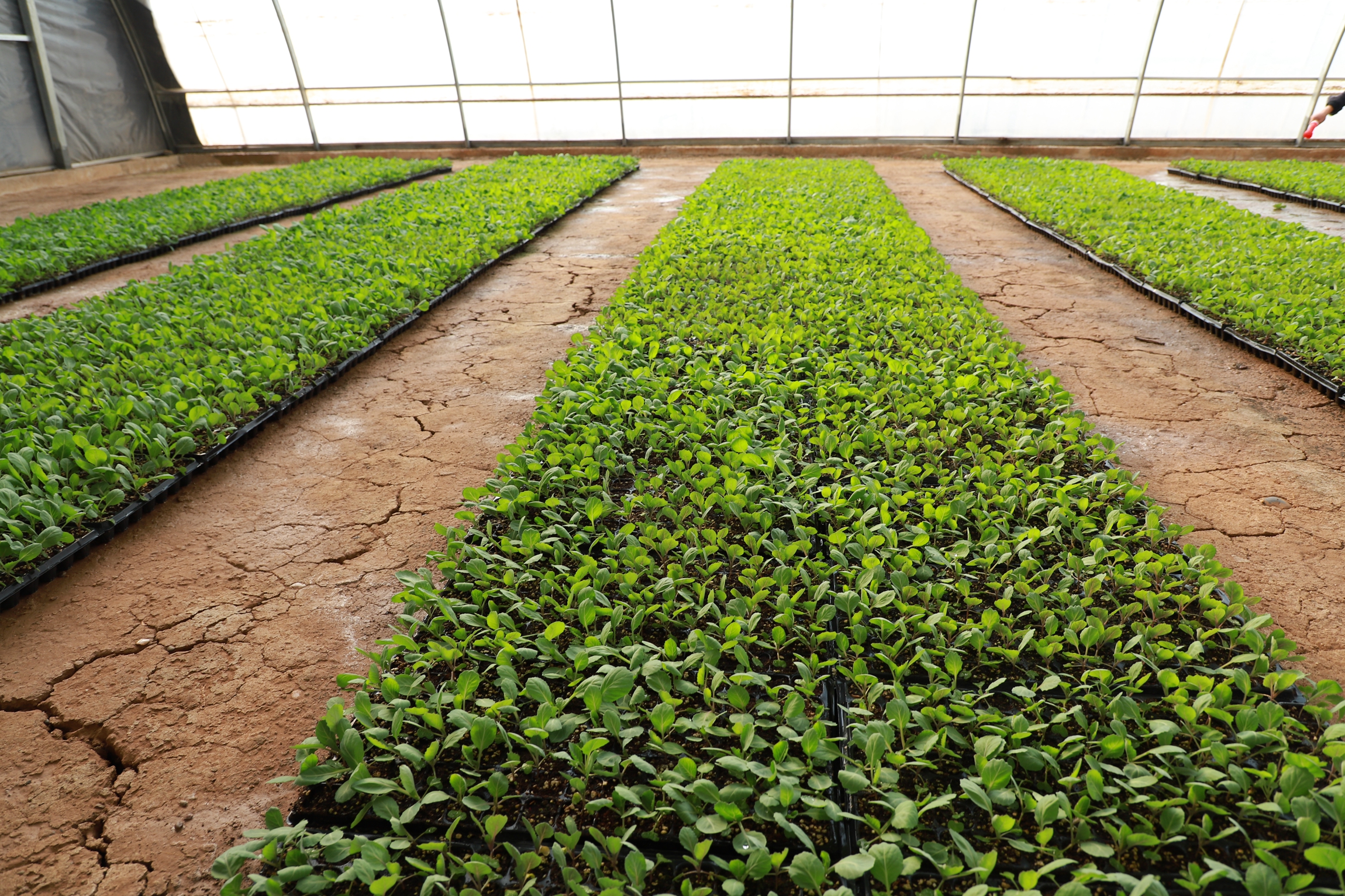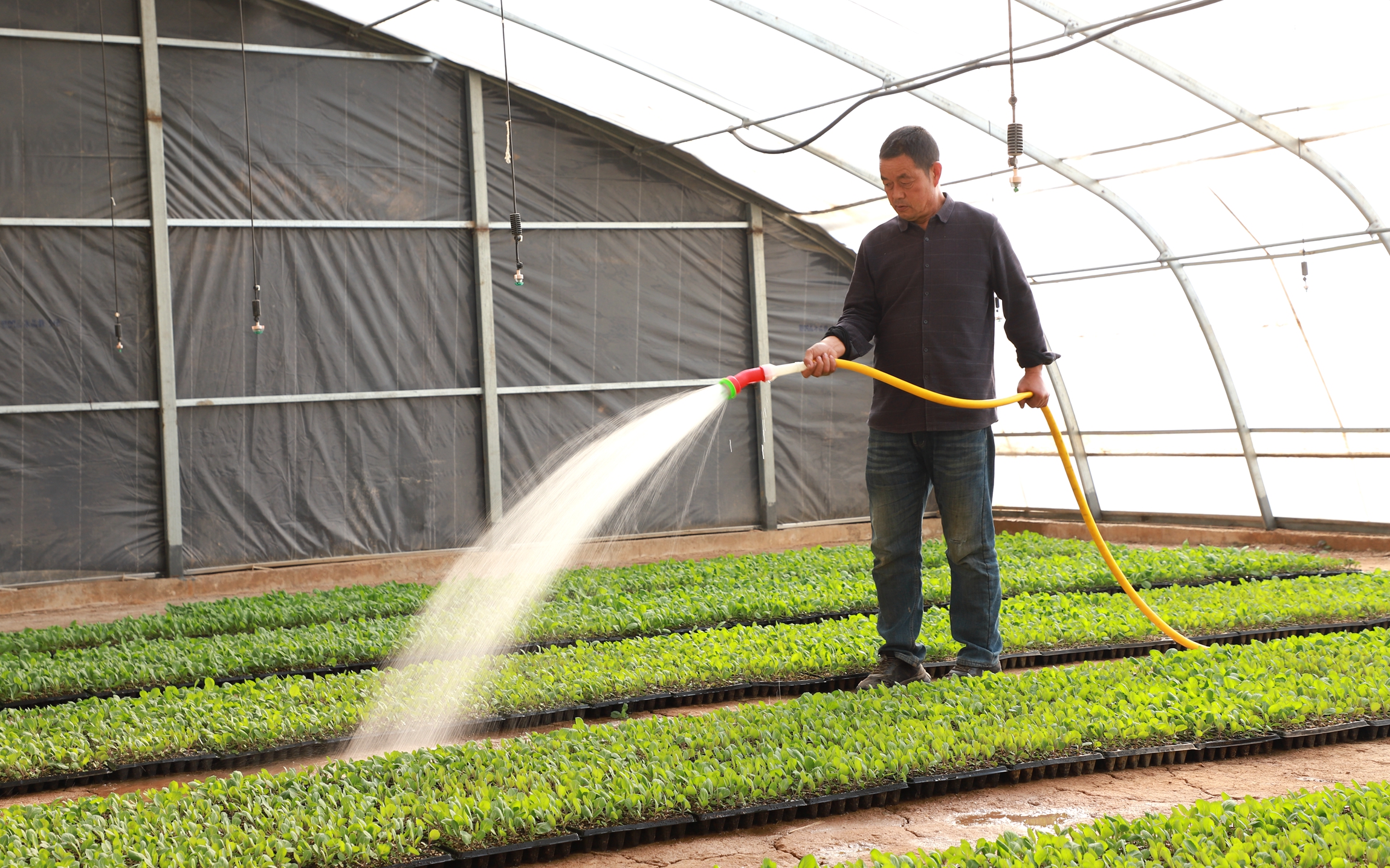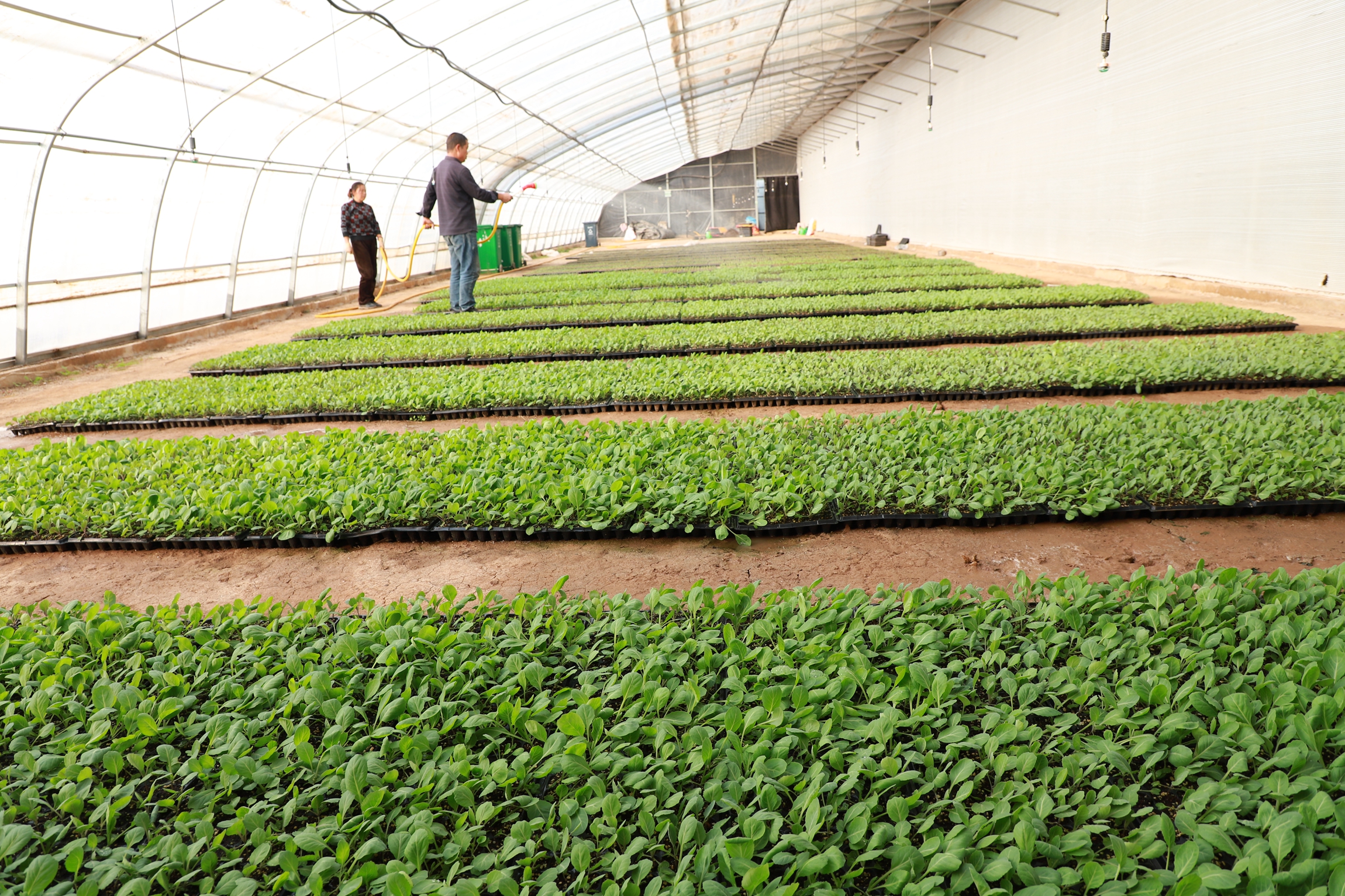 苗床上,一排排穴盘中的幼苗整齐划一,青翠欲滴。驻村干部马秀娣正仔细检查苗情,她介绍道:“我们这一茬培育了西瓜、包菜、菜花等各类种苗约30万株。其中超过20万株已被周边农户预定,剩余的也在持续销售中。”这种集约化、工厂化的育苗模式,正是周庄村蔬菜产业崛起的起点。