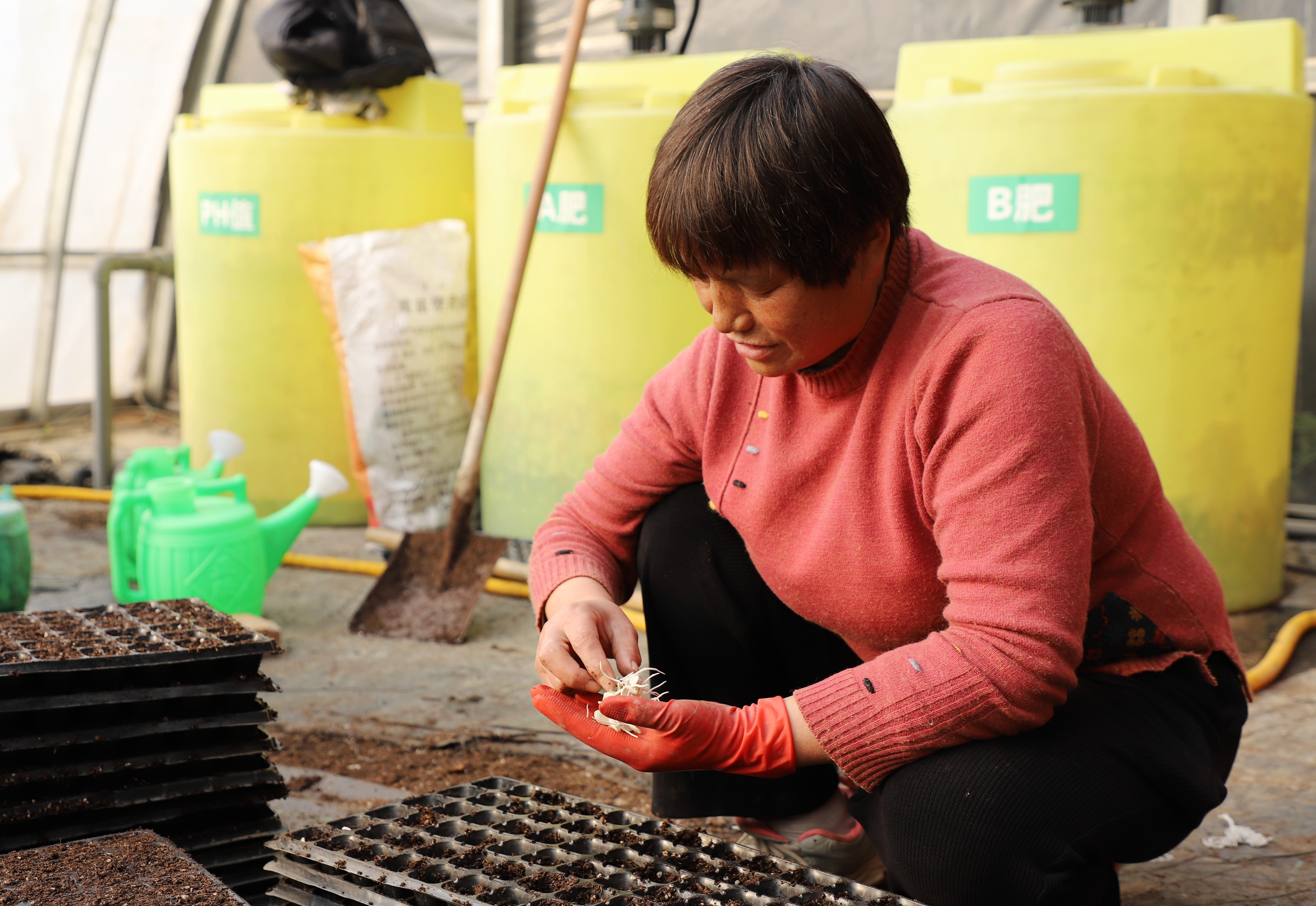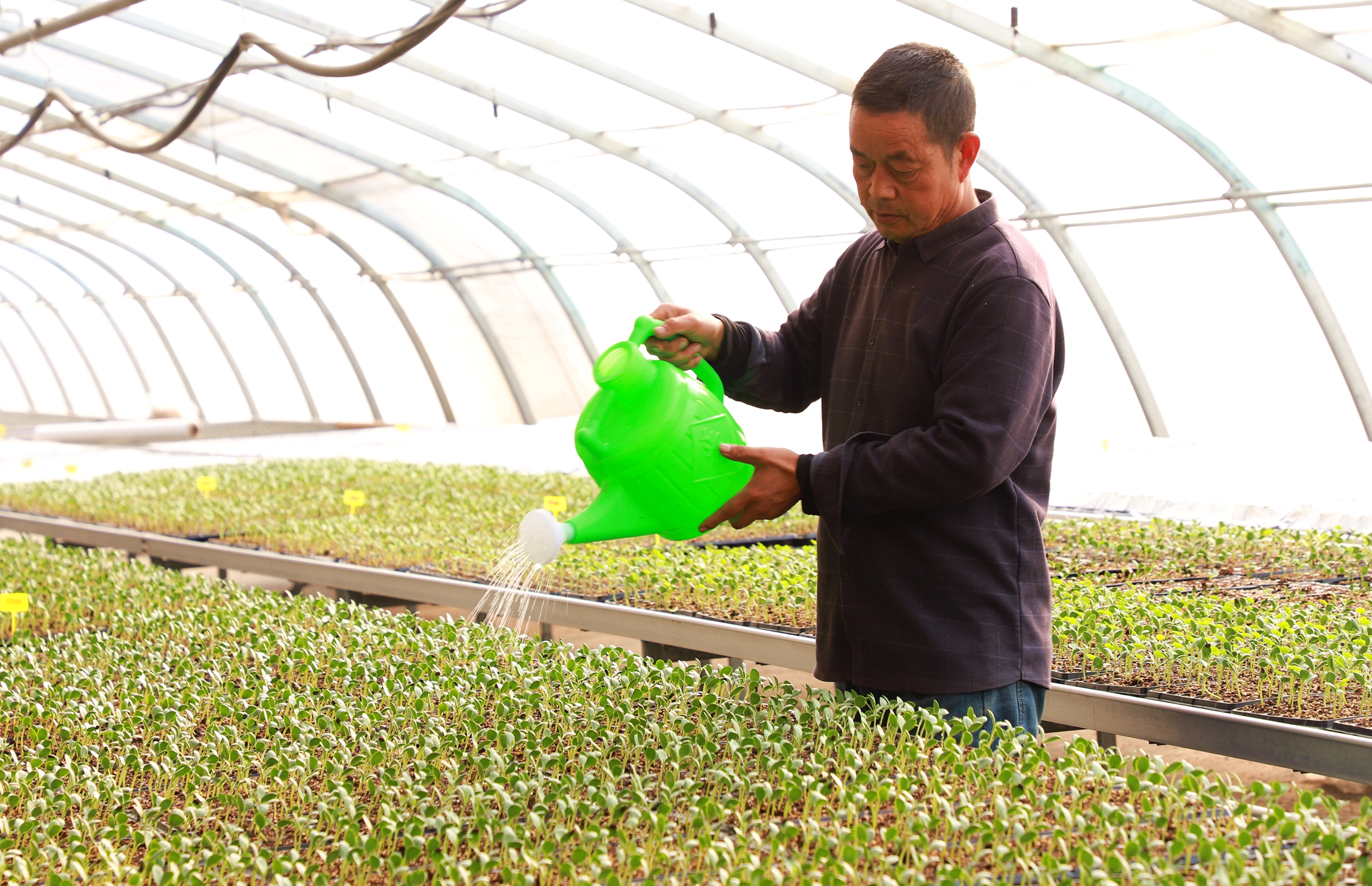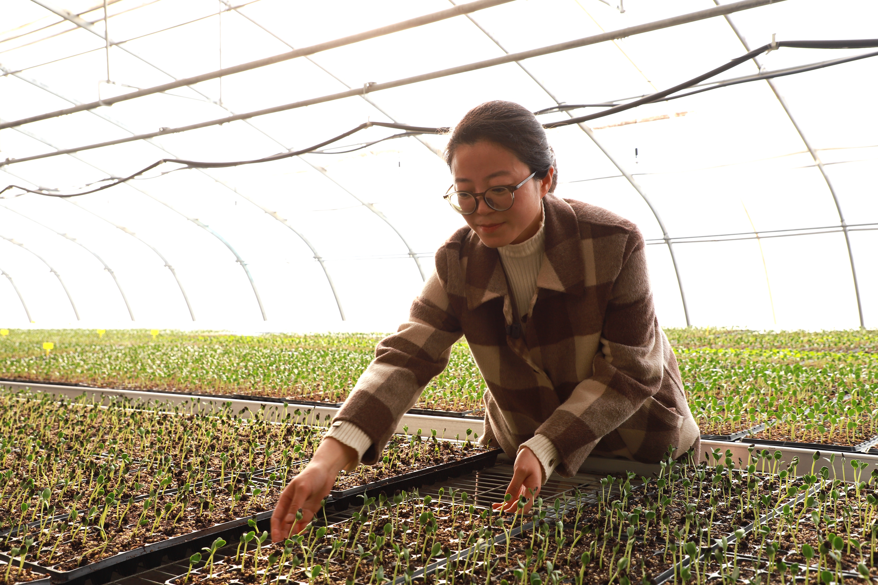 苗床上,一排排穴盘中的幼苗整齐划一,青翠欲滴。驻村干部马秀娣正仔细检查苗情,她介绍道:“我们这一茬培育了西瓜、包菜、菜花等各类种苗约30万株。其中超过20万株已被周边农户预定,剩余的也在持续销售中。”这种集约化、工厂化的育苗模式,正是周庄村蔬菜产业崛起的起点。