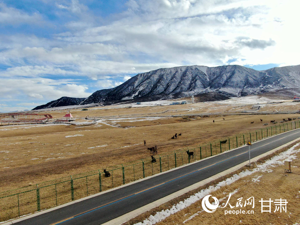 时值冬日,祁连山银装素裹。位于祁连山北麓腹地的甘肃省张掖市肃南裕固族自治县祁连山鹿文化生态旅游区内,成群的祁连山马鹿漫步雪原,与远山、草原、松林共同构成一幅灵动的水墨画卷,吸引众多游客前来赏雪观鹿,体验冬日草原的别样风情。