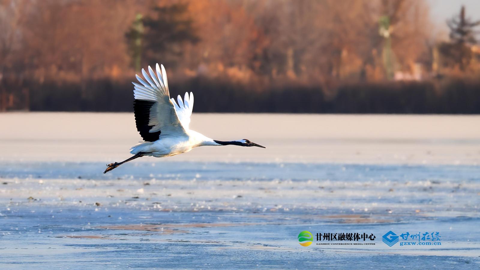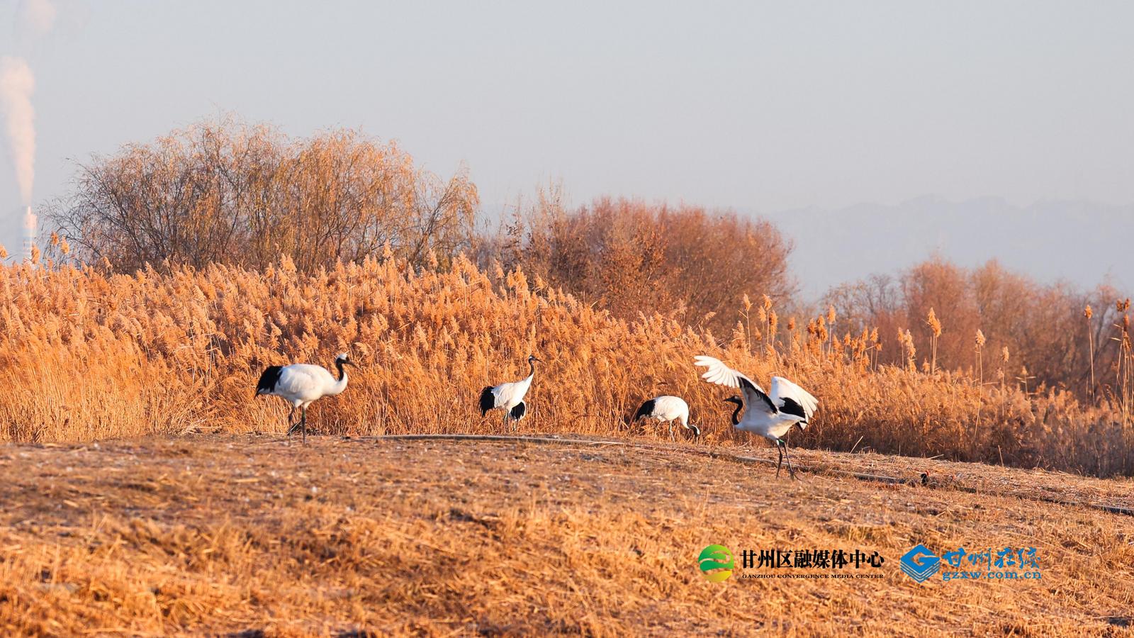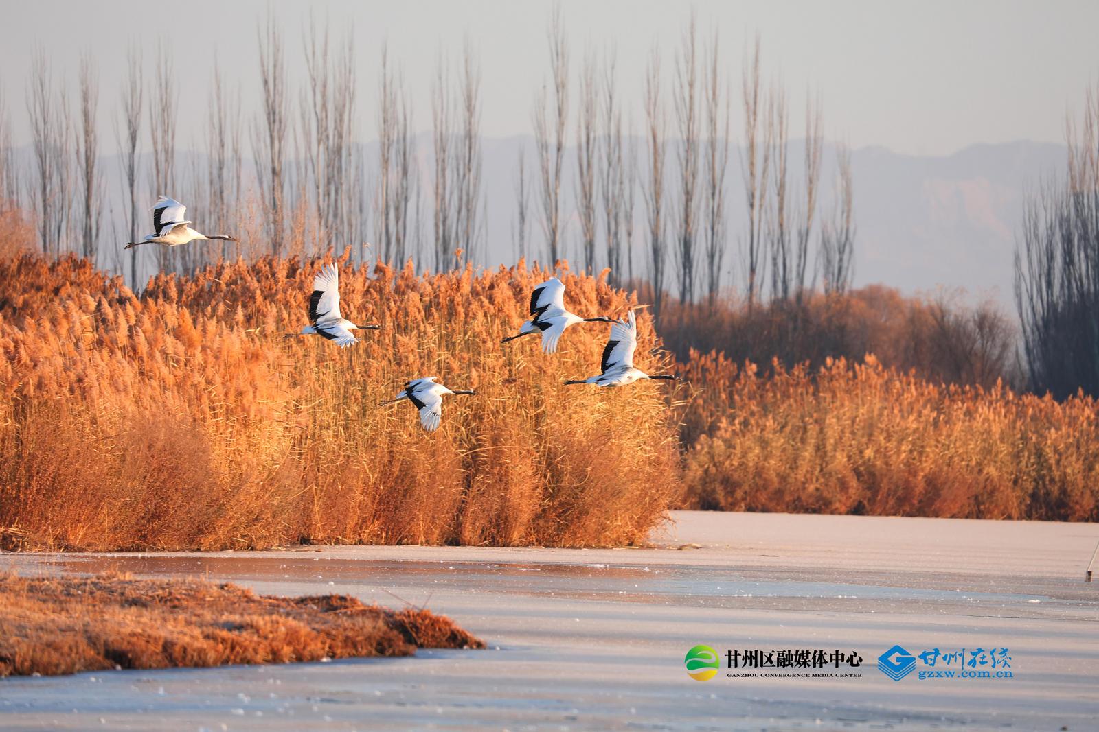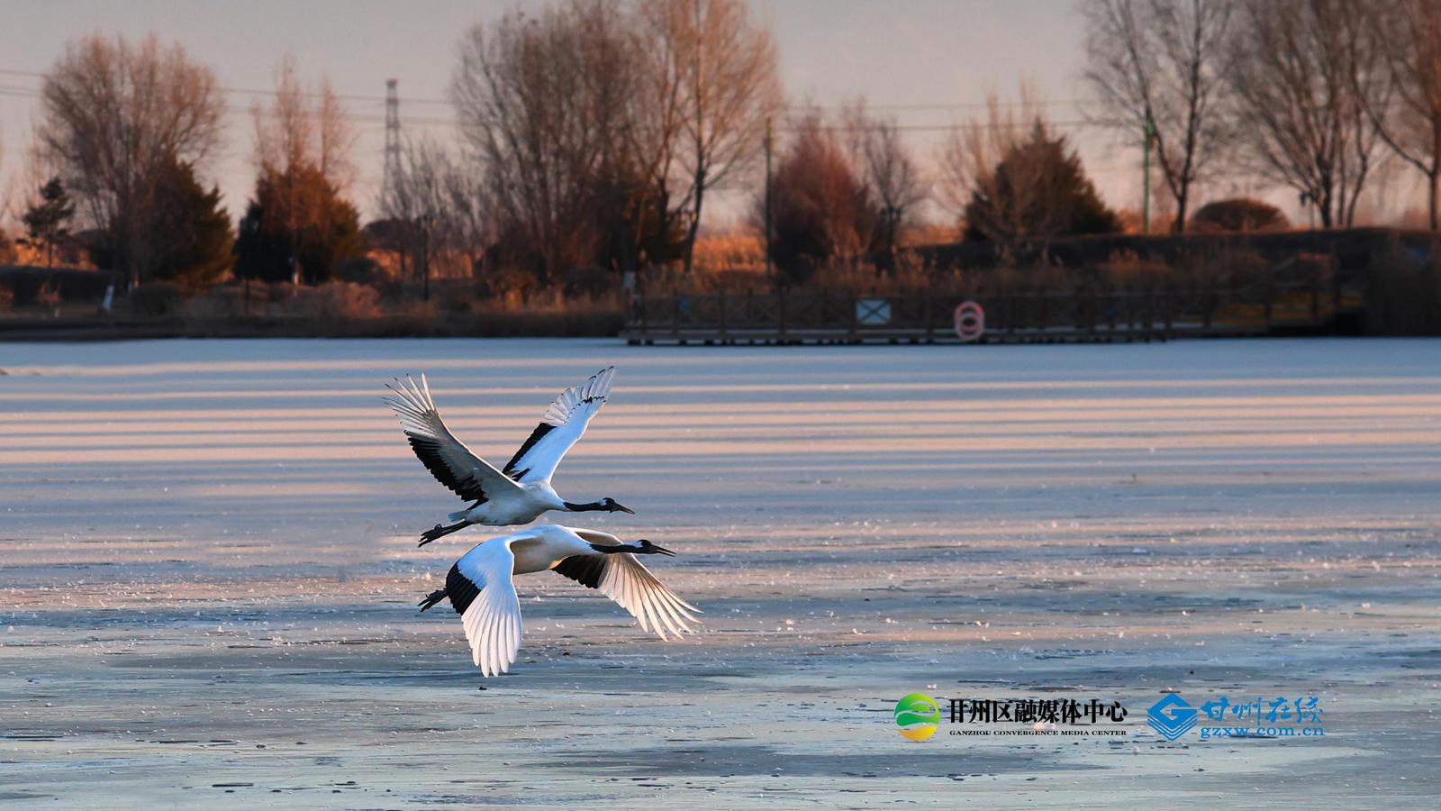 【祁连山下是我家】张掖甘州:晴冬鹤影醉晨光