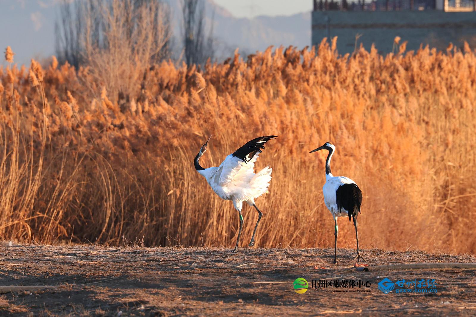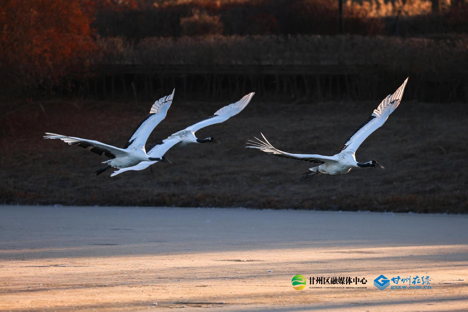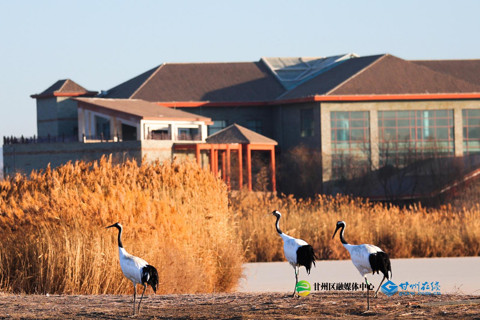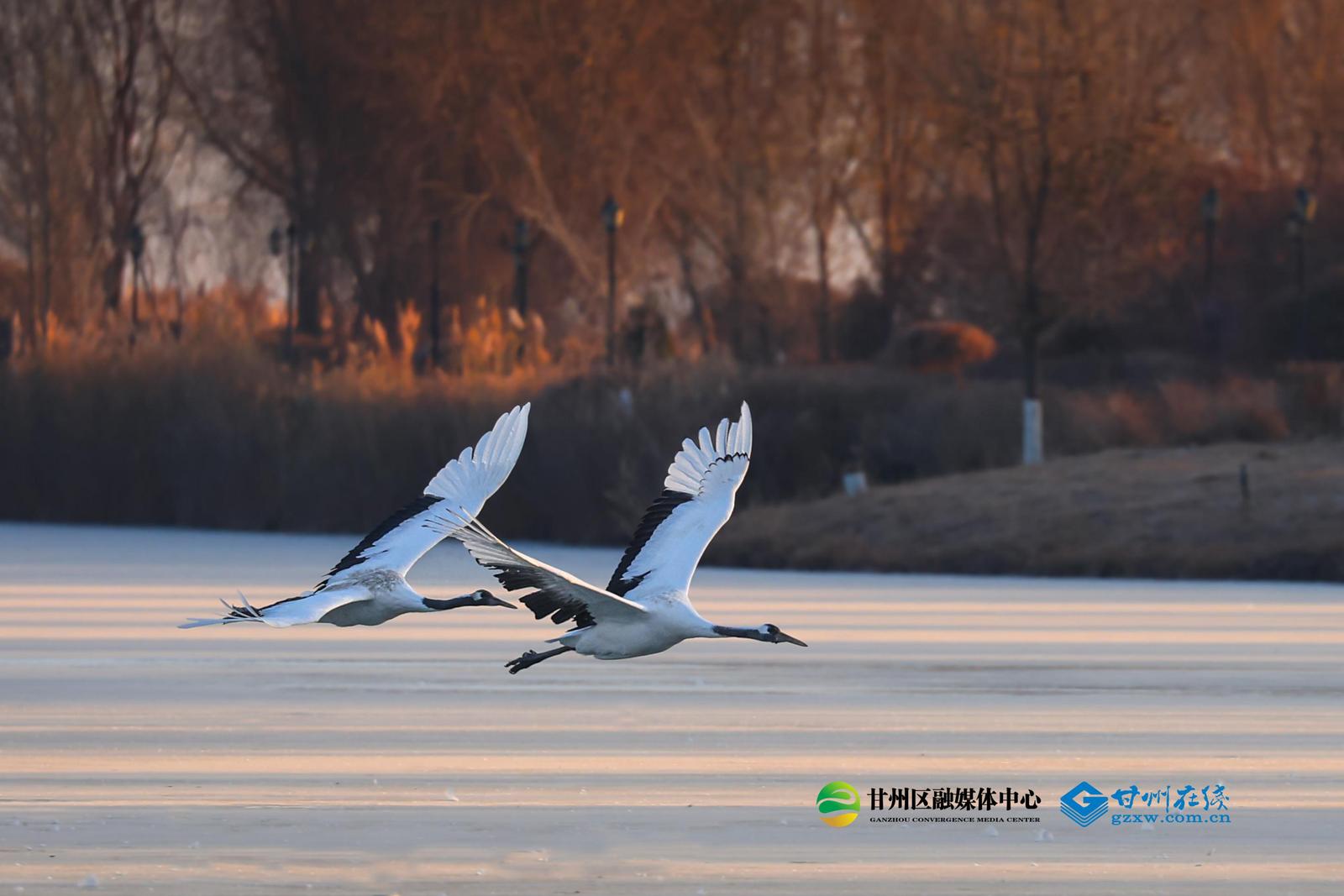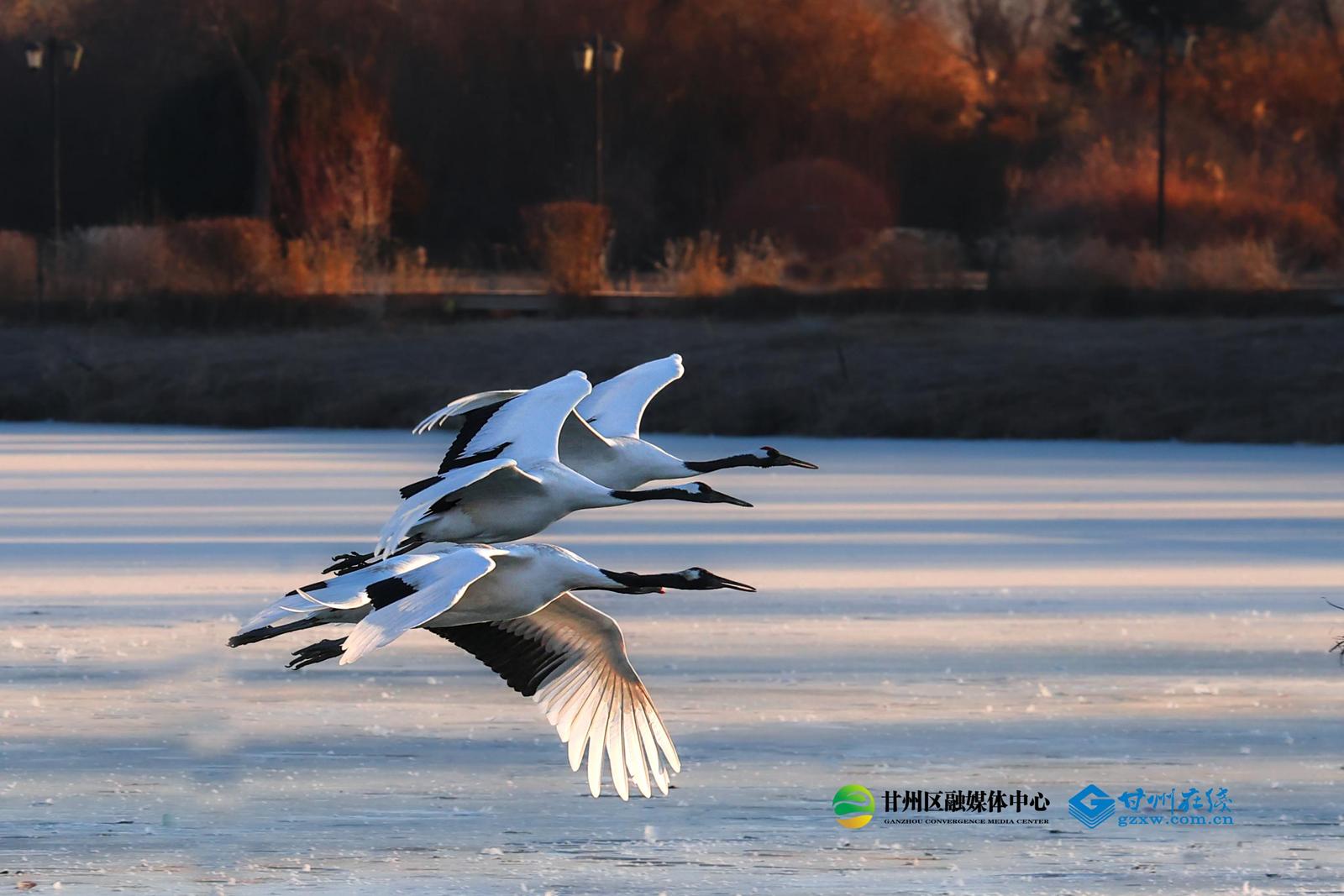 【祁连山下是我家】张掖甘州:晴冬鹤影醉晨光