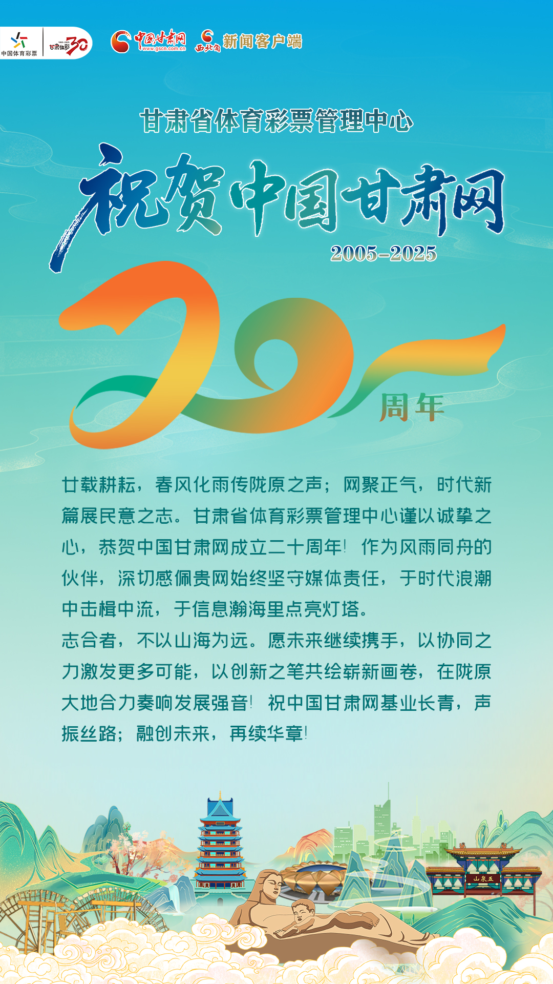 二十载·正青春丨甘肃省体育彩票管理中心祝贺中国甘肃网成立20周年:基业长青,再续华章!